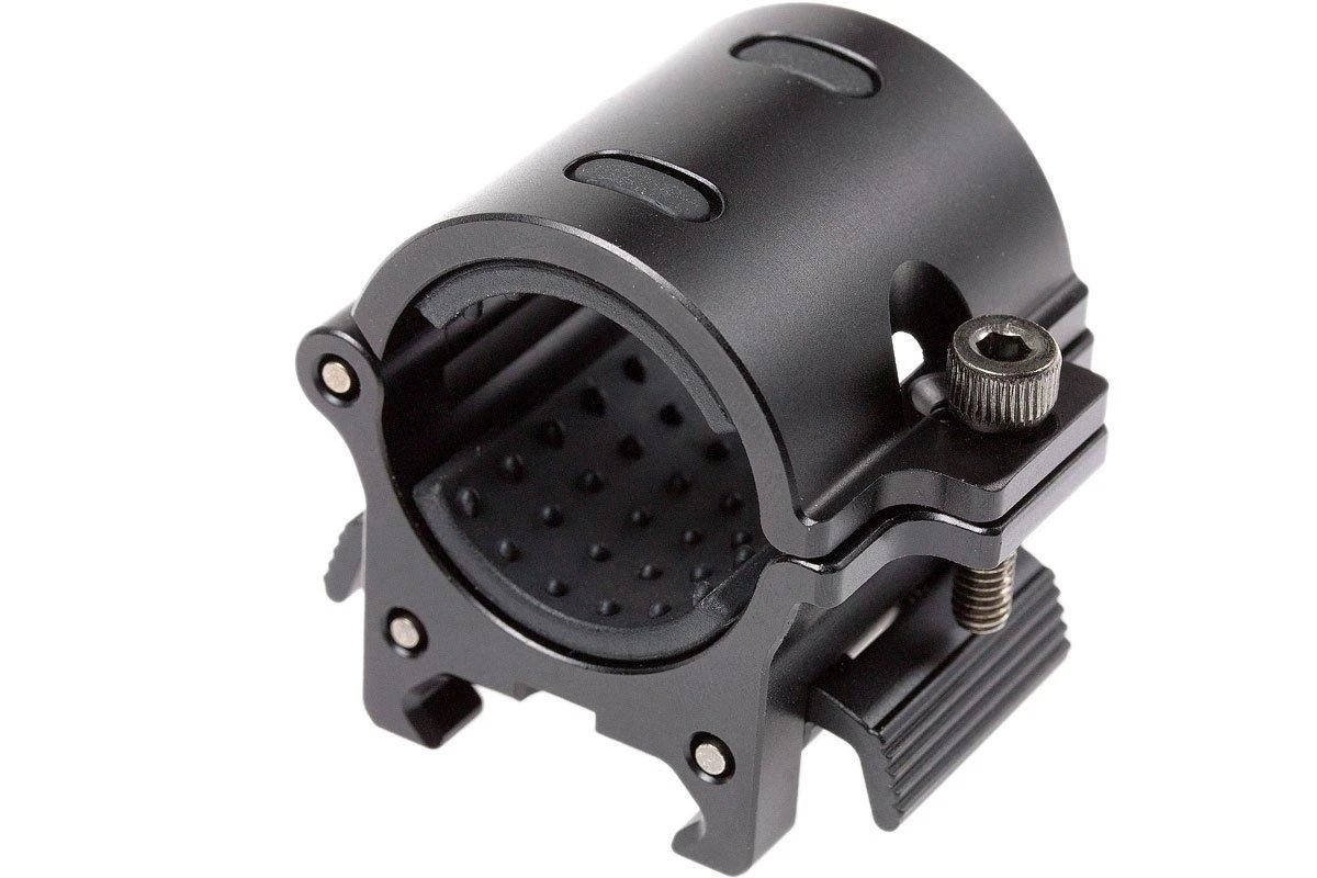 Befestigungssystem für Taschenlampe auf Picatinny oder Weaver Schiene.