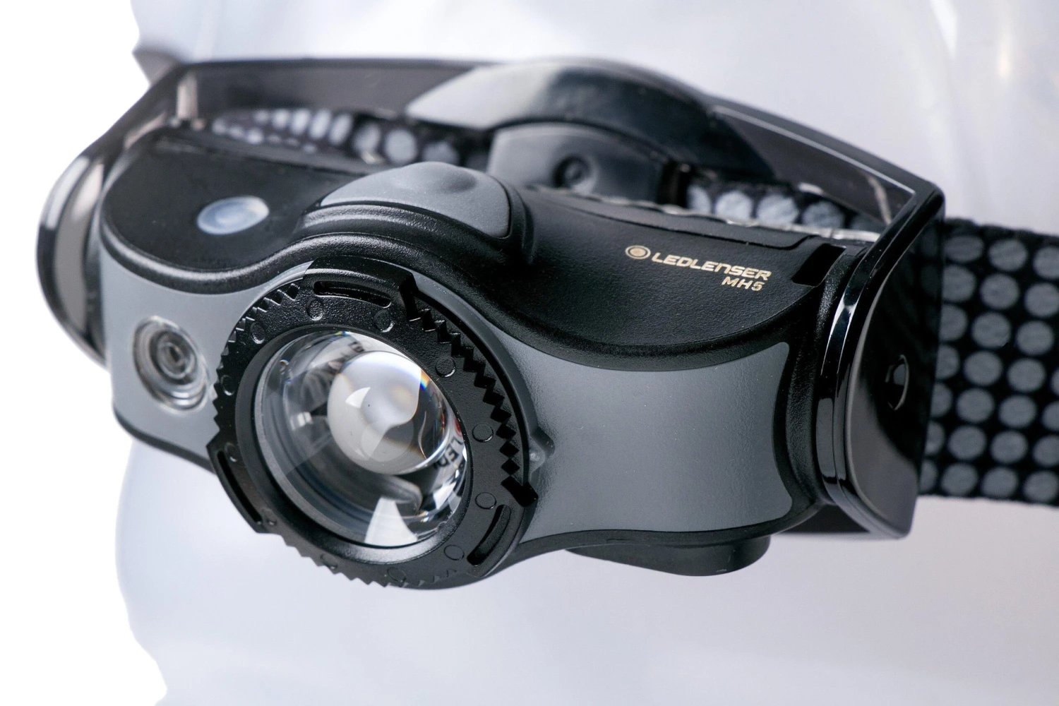 Die wiederaufladbare Ledlenser MH5 ist eine starke Stirnlampe. Sie wird mit dem mitgelieferten 14300 Li-Ionen-Akku betrieben und kann mit der mitgelieferten Ladestation aufgeladen werden. Dadurch ist die MH5 umweltfreundlich und es werden keine Einwegbatterien benötigt. Die Lampe kann jedoch auch mit einer herkömmlichen AA-Batterie betrieben werden. Die MH5 vereint somit die Vorteile eines wiederaufladbaren Akkus und einer austauschbaren Batterie.