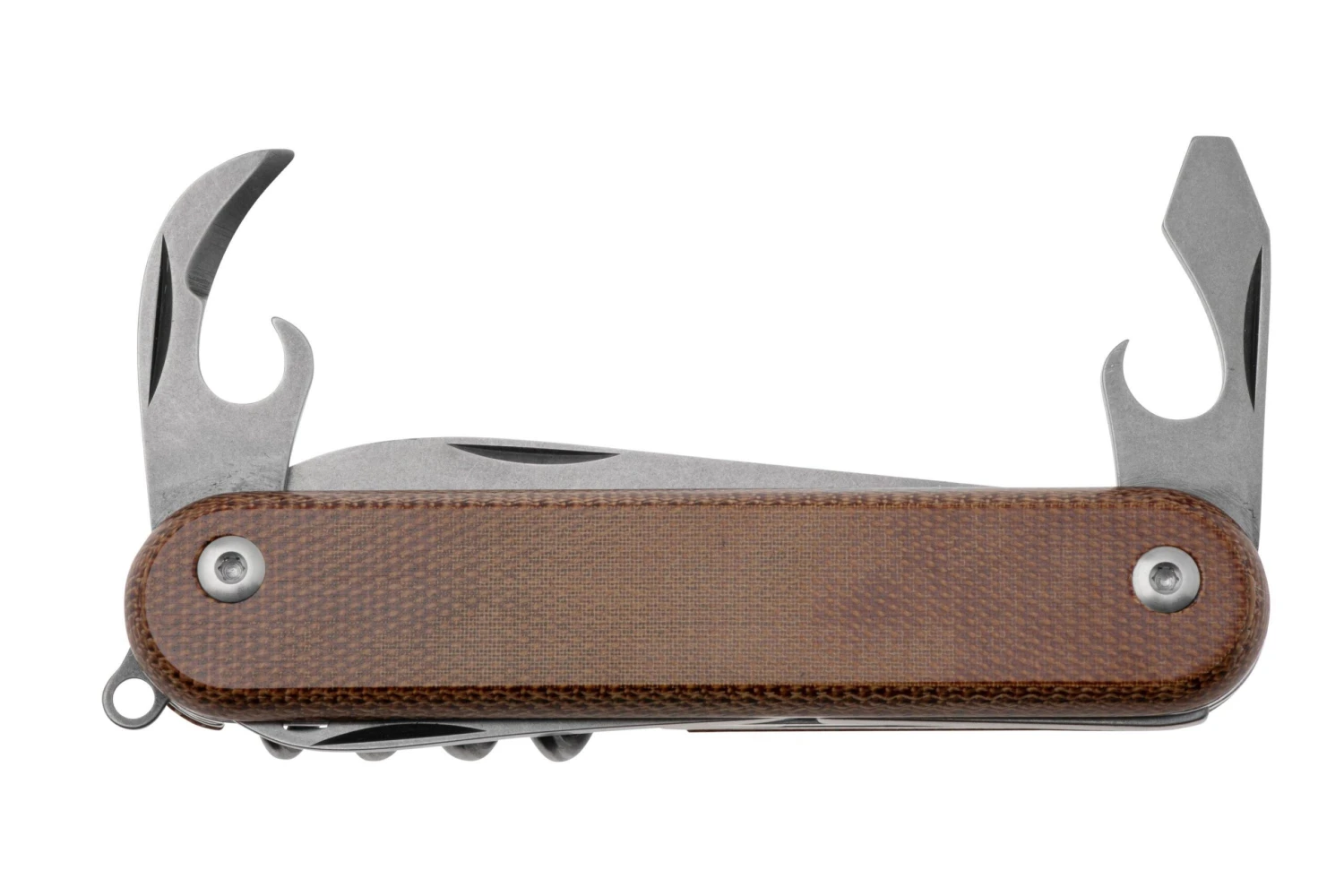 Das MKM Malga 6 ist ein hochwertiges Taschenmesser im Stil der bekannten Schweizer Taschenmesser. Das Messer wird jedoch etwas weiter südlich hergestellt, nämlich in Maniago, Italien. Und das auch noch aus sehr schönen Materialien! Bei Schweizer Taschenmessern und Multitools werden oft die verschiedenen Werkzeuge hervorgehoben. Die Stahlsorte ist oft eher Nebensache. Das ist beim Malga 6 von MKM anders. Die Tools des Taschenmessers sind natürlich auch in Ordnung, aber die Klinge ist die Hauptattraktion. Hierfür wurde nämlich Magnacut-Stahl gewählt. Eine extrem widerstandsfähige und rostfreie Stahlsorte mit enorm langer Schärfebeständigkeit, so dass Du nur selten nachschleifen musst. Dies alles macht das MKM Malga 6 zu einem vollwertigen und hochwertigen EDC-Taschenmesser.