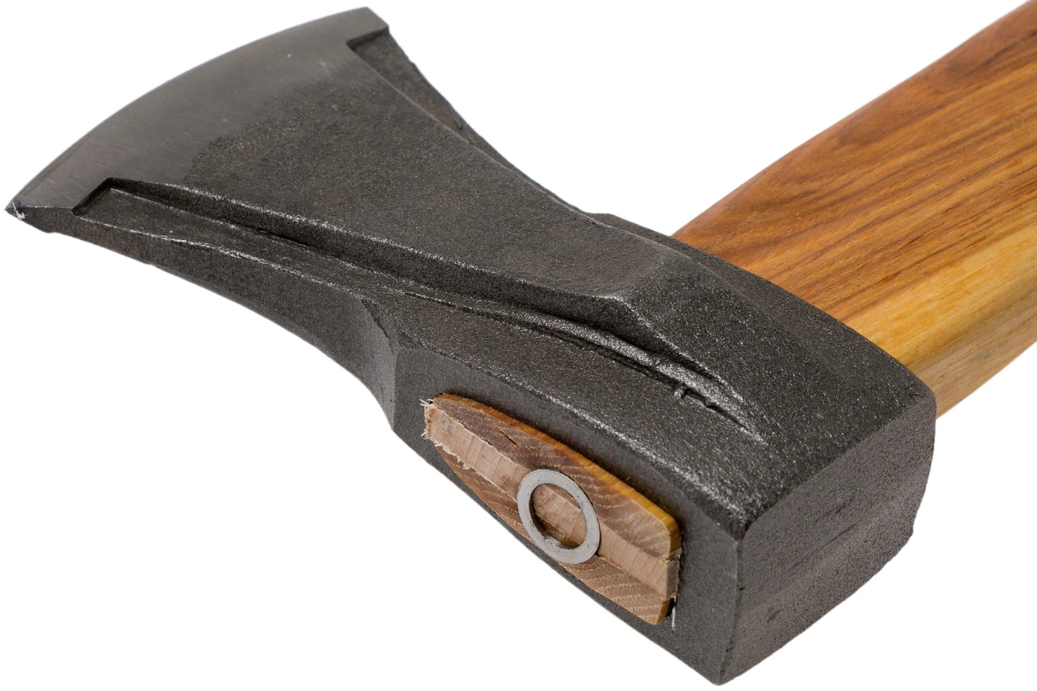 Das Müller Biber Classic-S ist ein klassisches Handbeil mit einem Kopfgewicht von 1200 Gramm und einer Stiellänge von 60 Zentimetern. Es ist gut geeignet um Anfeuerholz vorzubereiten. Der Stiel ist aus amerikanischem Hickory-Holz gefertigt. Diese Holzsorte ist unglaublich stark und ist brech- und splitterbeständig. Sie gehört zur hochwertigen Biber Classic-S Serie und wird in Österreich handgeschmiedet, was sich auch in der klassischen, rauen Optik des Stahls des Kopfes zeigt. Dieser Kopf hat eine ausgestellte Form, sodass man eine sehr breite Schnittkante erhält. Der geschmiedete Keil im Kopf drückt das Holz beim Spalten regelrecht auseinander. Im Lieferumfang ist ein Lederholster enthalten.