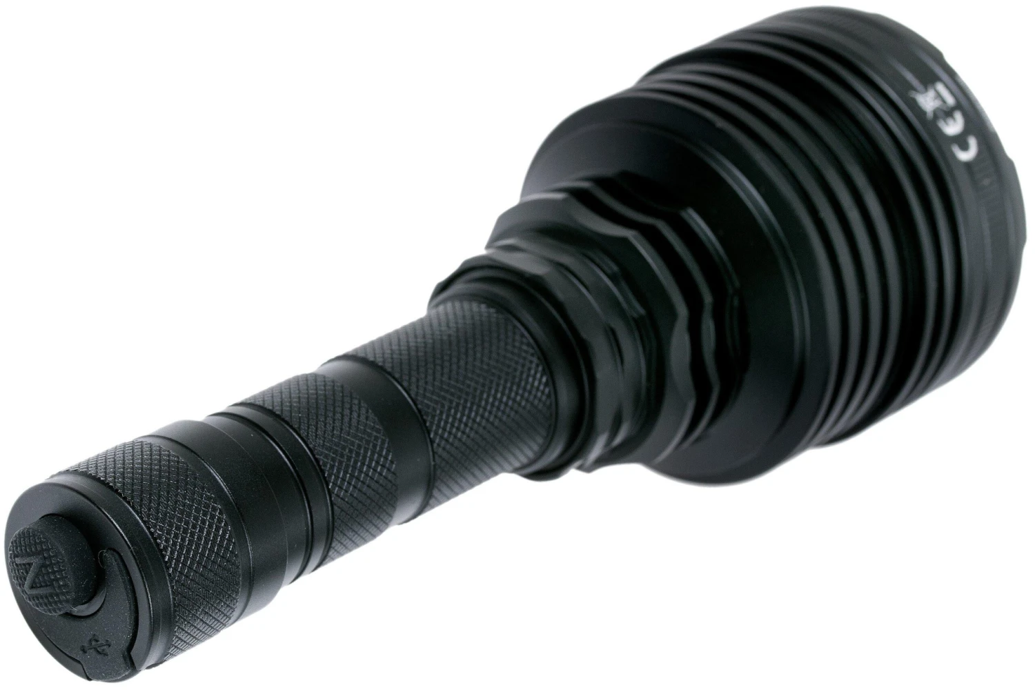 Die Nitecore P30i ist eine leistungsstarke Taschenlampe mit einer Leistung von 2000 Lumen und einem Lichtbündel, das 1000 Meter weit reicht! Dank dieser Reichweite eignet sich die Lampe sehr gut für Jagd-, Such- und Rettungseinsätze. Die Lampe enthält eine Cree XHP35 HI LED, die Dir 5 verschiedene Lichtmodi bietet.