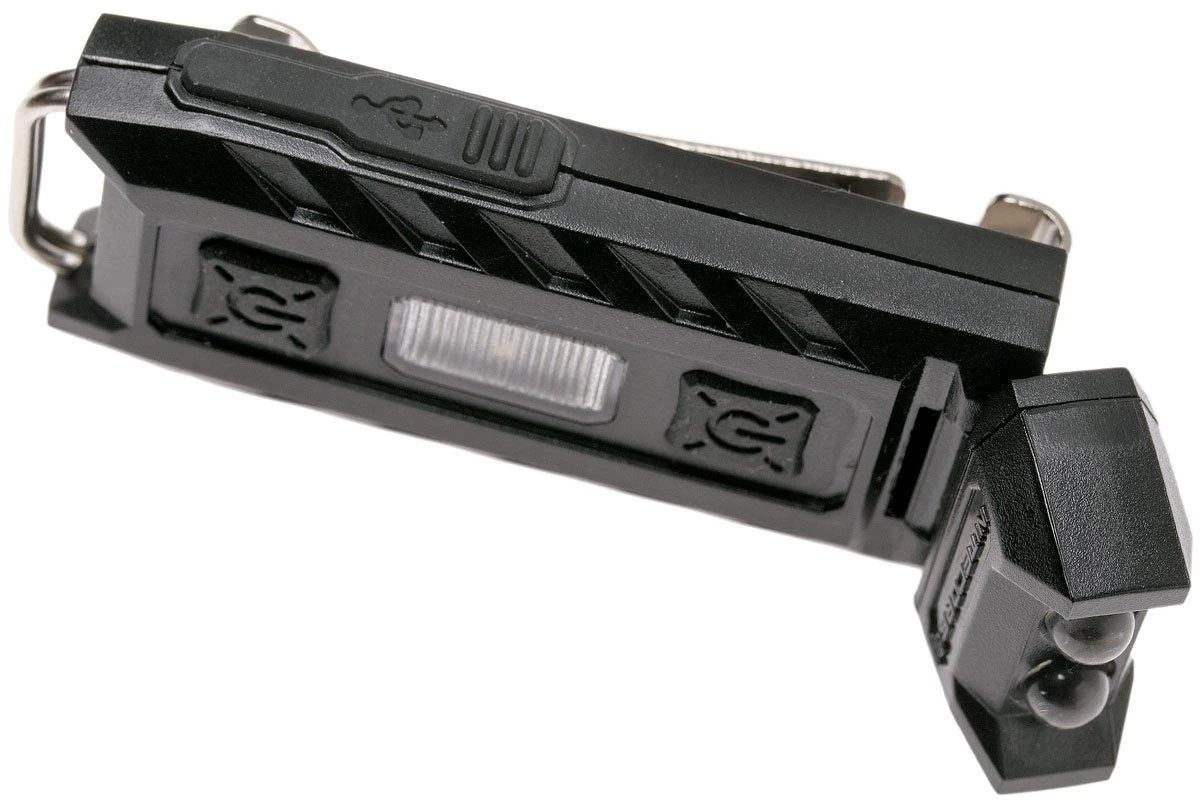 Die Nitecore Thumb LEO ist eine kleine Schlüsselanhänger-Leuchte für die Polizei. Der Lampenkopf ist schwenkbar und ermöglicht zusammen mit dem Taschenclip das Aufhängen z.B. an der Brusttasche. So hast Du Deine Hände für andere Tätigkeiten frei. Der rote und blaue Blinkmodus macht Dich gut sichtbar. Um das Bild zu vervollständigen, ist im Lampenkopf auch eine UV-LED installiert. Damit kannst du Spuren oder Falschgeld kontrollieren. Der UV-Strahl hat eine Wellenlänge von 365nm und eine Leistung von bis zu 500mW. An der Seite befinden sich zwei Schalter: einer für das rot-blaue Signallicht und einer für die weiße LED und die UV-LED.
