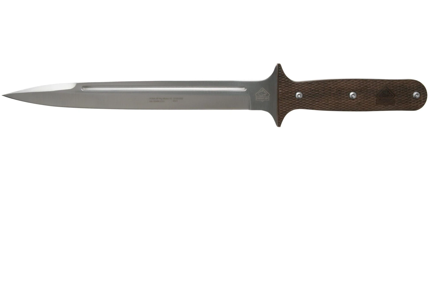 Das PUMA XP Pig Sticker 15 ist ein beachtliches Jagdmesser. Der Griff aus Bakkaholz ist mit einem Fischschuppenmuster versehen. So liegt das Messer gut in der Hand und bietet einen guten Halt. Der Griff ist zur Klinge hin breiter und bildet einen attraktiven Fingerschutz. Die große, spitz zulaufende Klinge ist aus 440er Stahl gefertigt. Es handelt sich um einen rostfreien Stahl, der seine Schärfe sehr gut beibehält und leicht selbst zu schleifen ist. Durch die Kombination von Größe und Form der Klinge eignet sich dieses Messer hervorragend für die Bearbeitung von geschossenem Wild wie Reh und Wildschwein. Dies spiegelt sich in der Bezeichnung Schweineaufkleber wider.