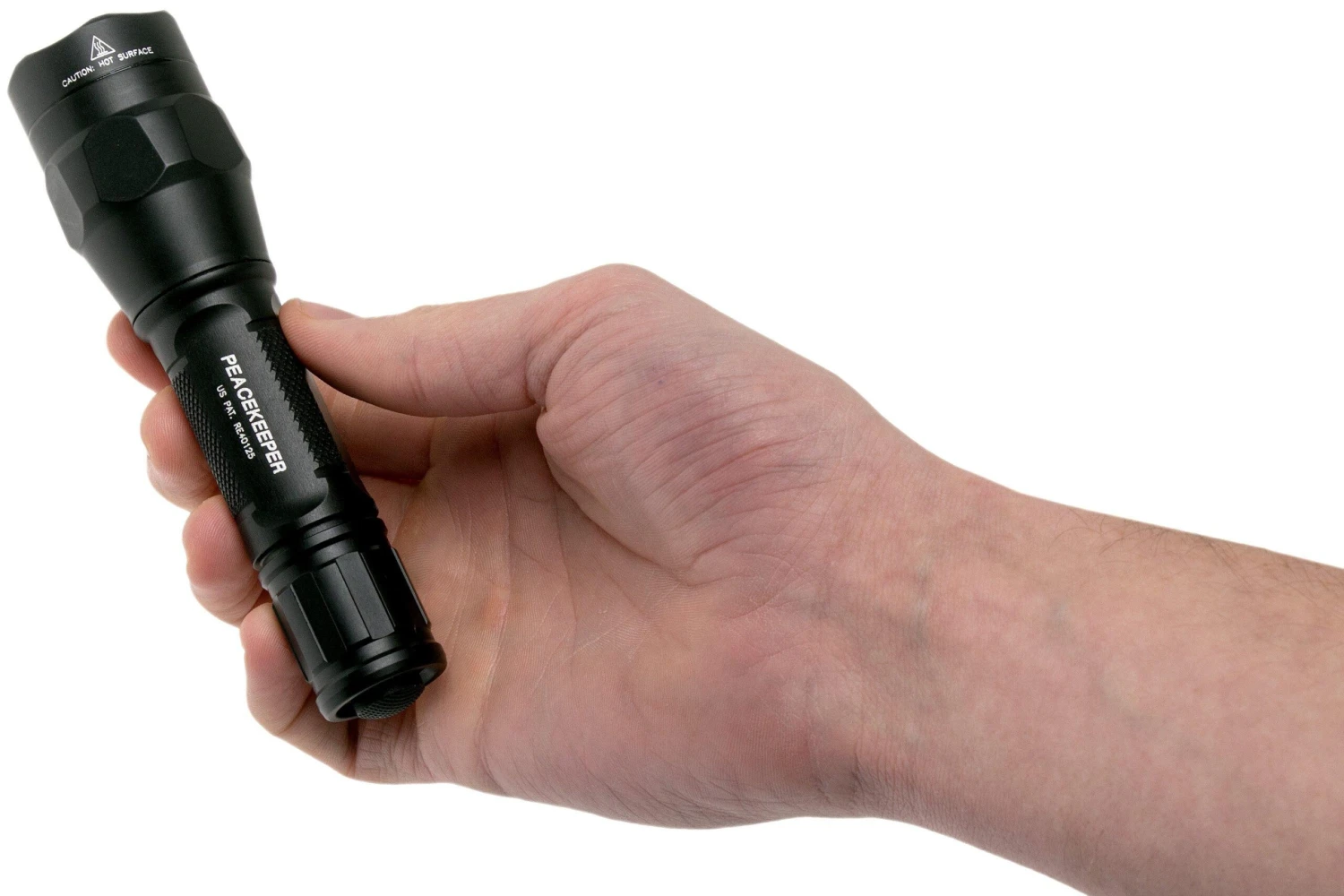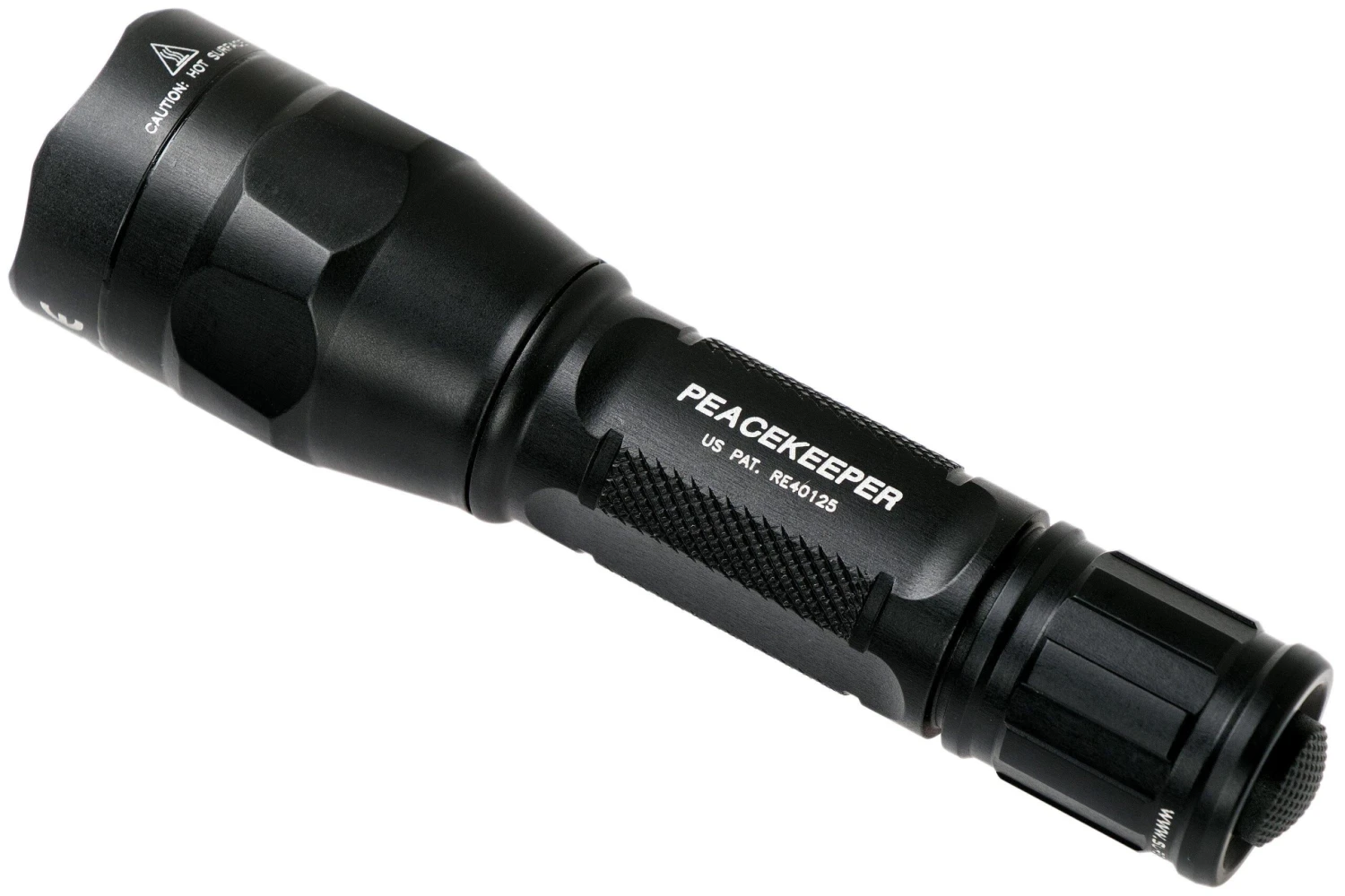 Die SureFire P1R Peacekeeper ist eine kompakte und robuste, aufladbare LED-Taschenlampe mit einem starken Lichtstrahl. Die Taschenlampe verfügt über einen Präzisionsreflektor, der das Licht kraftvoll strahlen lässt und gleichzeitig helles Umgebungslicht für die periphere Sicht liefert. Die Taschenlampe verfügt über einen taktischen Schalter, den Du drücken und drehen kannst. Die SureFire P1R ist u.a. optimal für Polizisten geeignet.