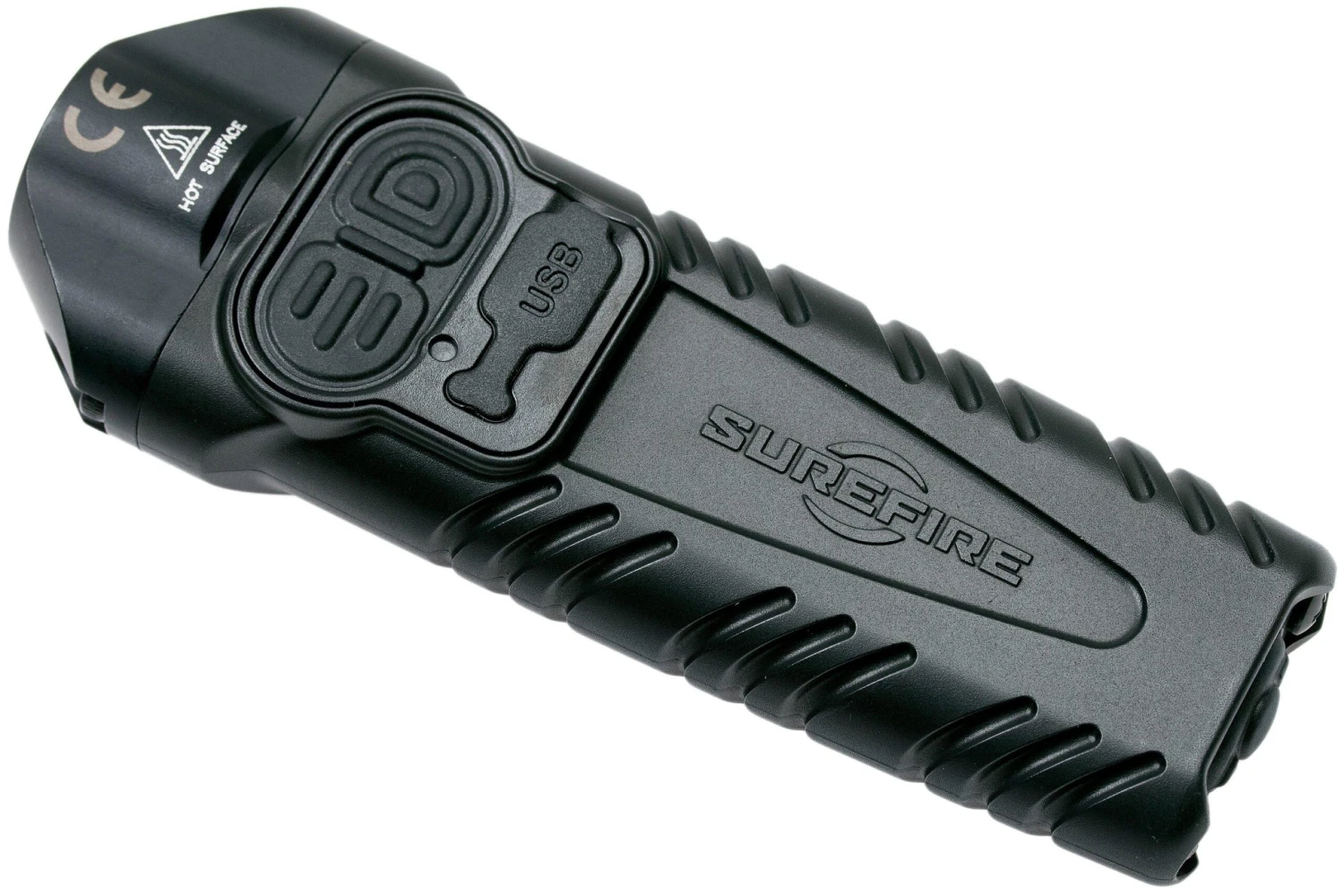 Die SureFire Stiletto Pro Taschenlampe ist eine einzigartige Kombination aus taktischer und zielgerichteter Taschenlampe. Diese wiederaufladbare Taschenlampe ist äußerst zuverlässig. Mit nur einem Druck startet die Lampe sofort mit der niedrigsten Einstellung von 25 Lumen. Diese Lampe hat eine leistungsstarke LED, die ein sehr helles, weißes Licht erzeugt. Die maximale Lichtleistung beträgt 1000 Lumen. Der Reflektor sorgt für eine klare Reichweite von 142 m.
