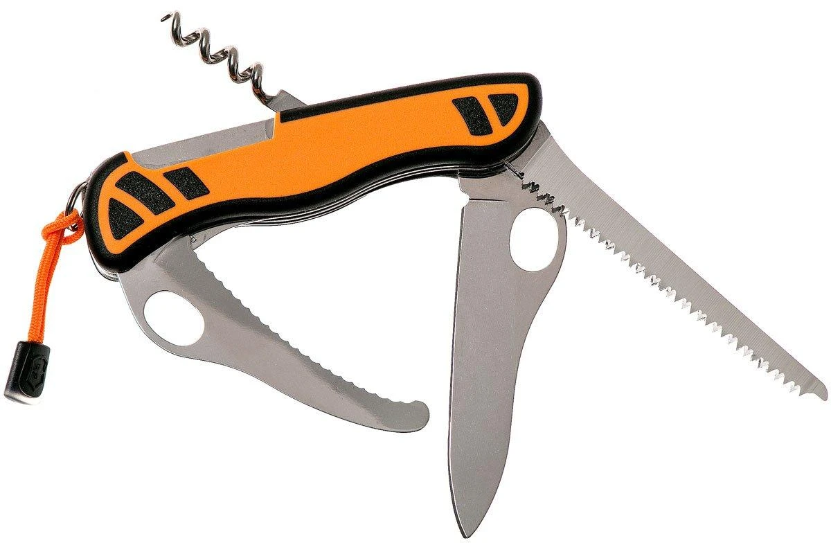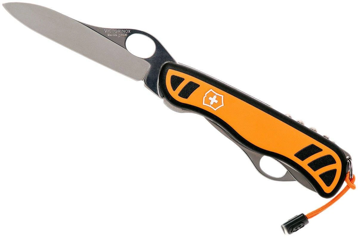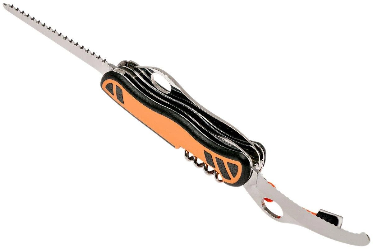 Das Hunter XT One von Victorinox ist die neueste Version des klassischen Hunter-Taschenmessers. Mit einem neuen Look und einem orange-schwarzen Design. Entwickelt für Anfänger ebenso wie für erfahrene Jäger und andere Outdoor-Fans. Mit seiner großen Klinge, der Holzsäge und dem Gurtschneider ist dieses Taschenmesser der perfekte Retter in der Not. Das Messer und der Gurtschneider können mit einer Hand durch das Daumenloch geöffnet werden. Die Schalenteile sind aus Nylon und die Einlegeteile aus Gummi gefertigt. Dieses sorgt für einen festen Halt, auch bei Nässe. Durch die auffällige Farbe ist das Messer im Falle eines Sturzes leicht auffindbar.